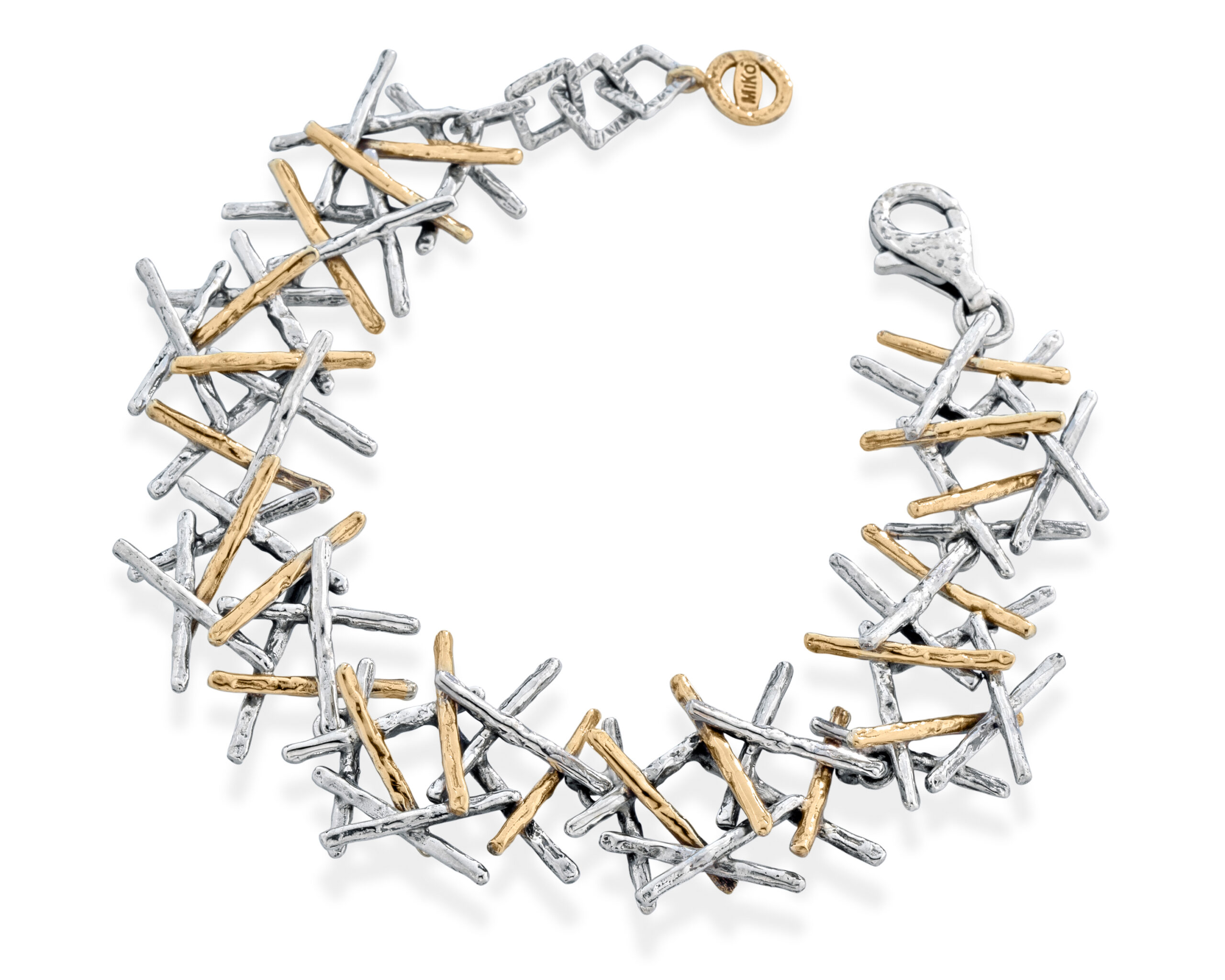 Bracciale argento 925 bacchette sovrapposte in bronzo, chiusura a moschettone. Lunghezza bracciale da 19,5cm a 21cm circa