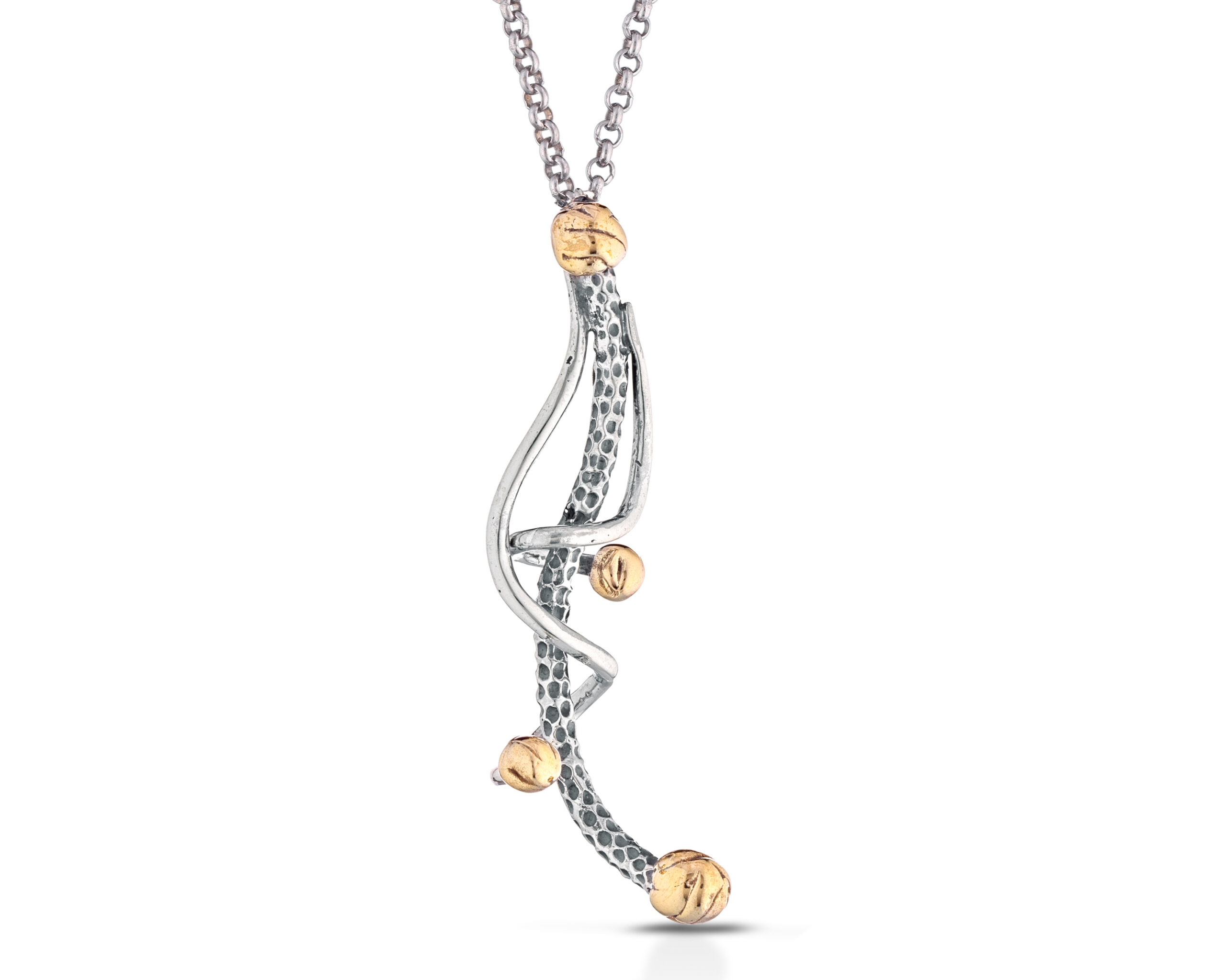 Ciondolo argento 925 con riporti in bronzo con catena, chiusura a moschettone. Lunghezza ciondolo 45cm circa