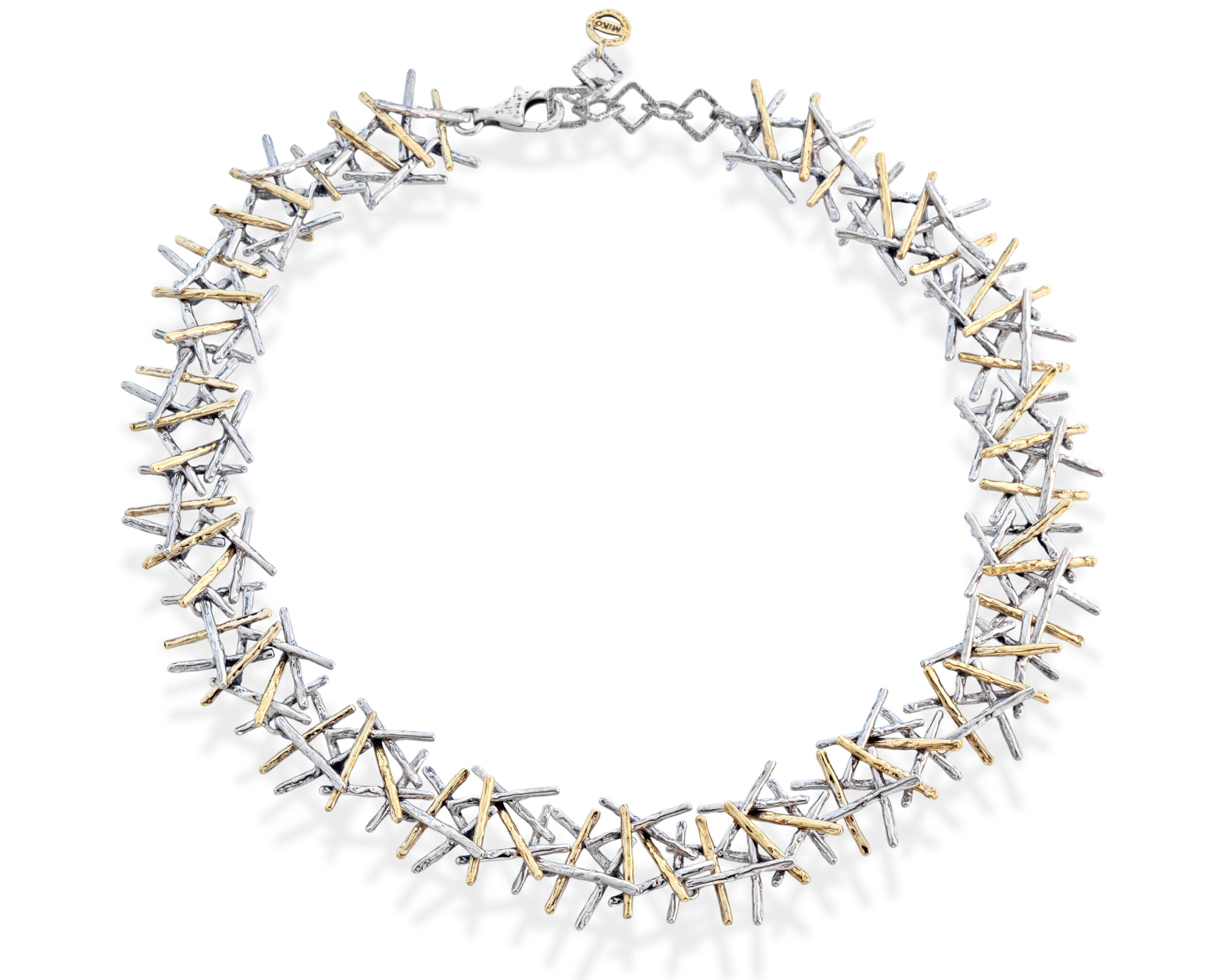 Girocollo argento 925 bacchette sovrapposte in bronzo, chiusura a moschettone. Lunghezza girocollo da 43,5cm a 48cm circa.