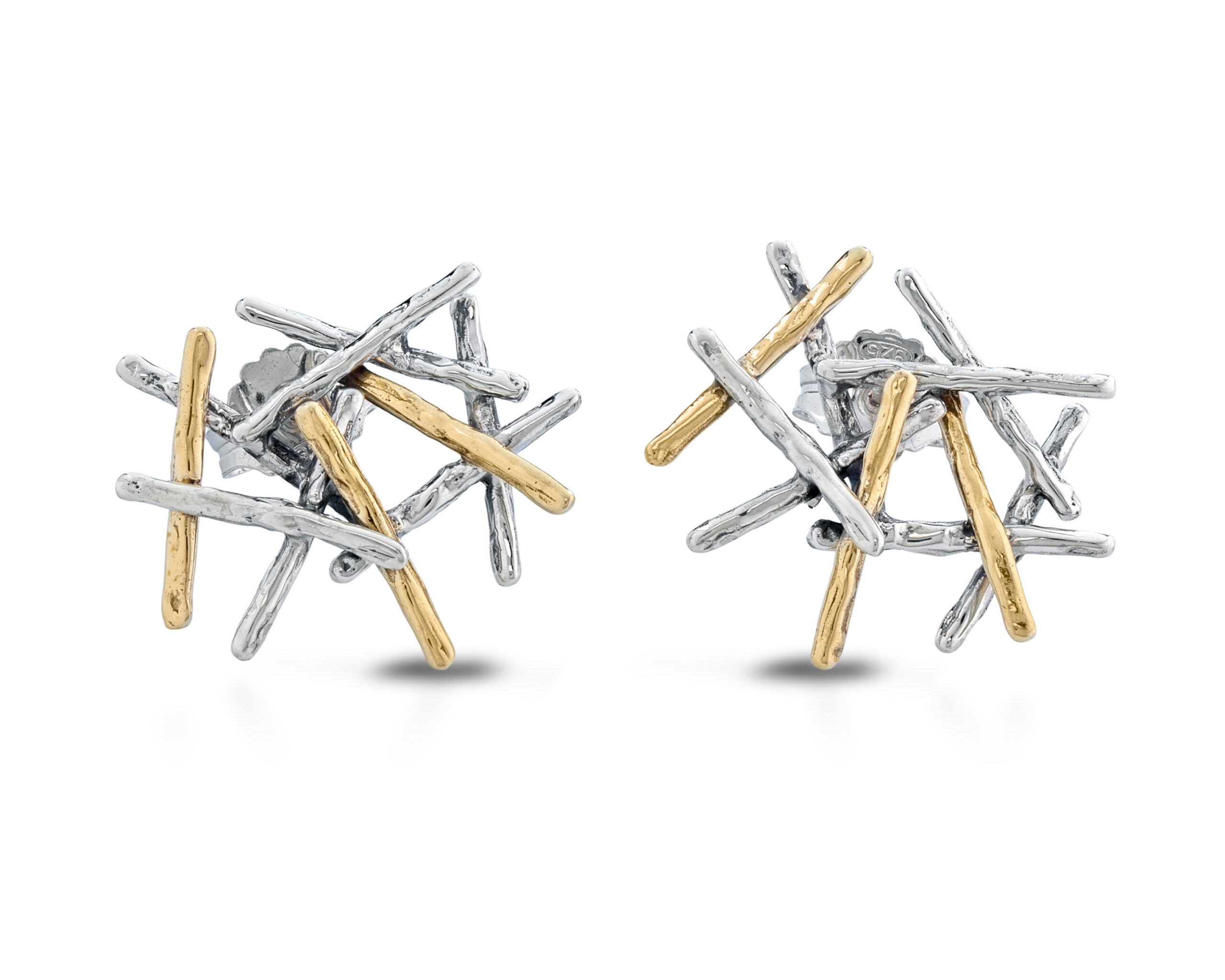 Orecchini argento 925 a lobo bacchette sovrapposte, chiusura a farfallina. Lunghezza orecchino 2cm circa